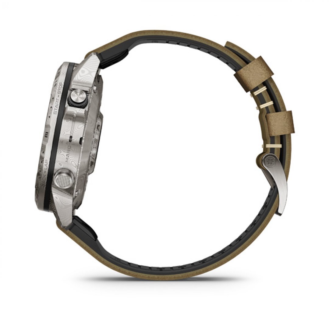 luxury watches luxury watches Garmin MARQ Adventurer (Gen 2) Damascus Steel Edition 46MM, STEEL CASE, WATER RESISTANCE 100 M. The watch has functions training functions, altimeter , GPS , GLONASS , GALILEO, Akcelerometer, Garmin Pay™, Vysoko-citlivý prijímač, Možnosť dohrávania máp, Bluetooth®, Wi-Fi®, MP3 player, touchscreen and Strava segments. Basic parameters of the watch are: movement type is Quartz watches, water resistance is 100 m and strap material is rubber and leather.