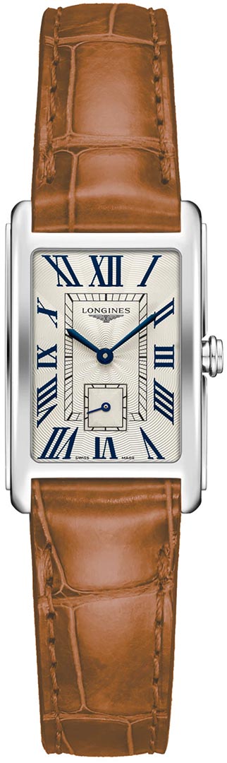 luxury watches Longines DolceVitta Quartz, 20.5 x 32 mm. Basic parameters of the watch are: dial colour is silver, movement type is Quartz watches, strap material is leather and water resistance is 30 m.