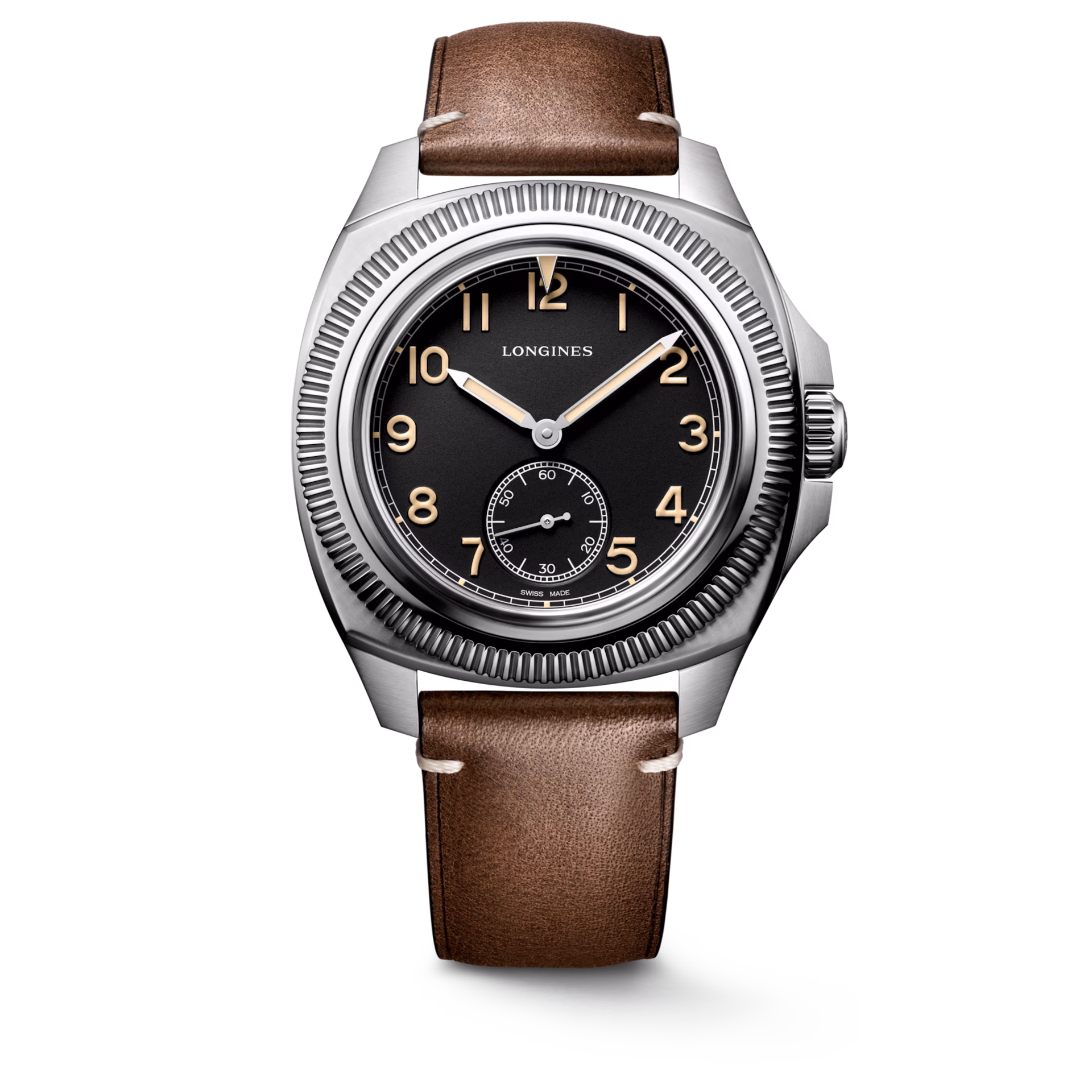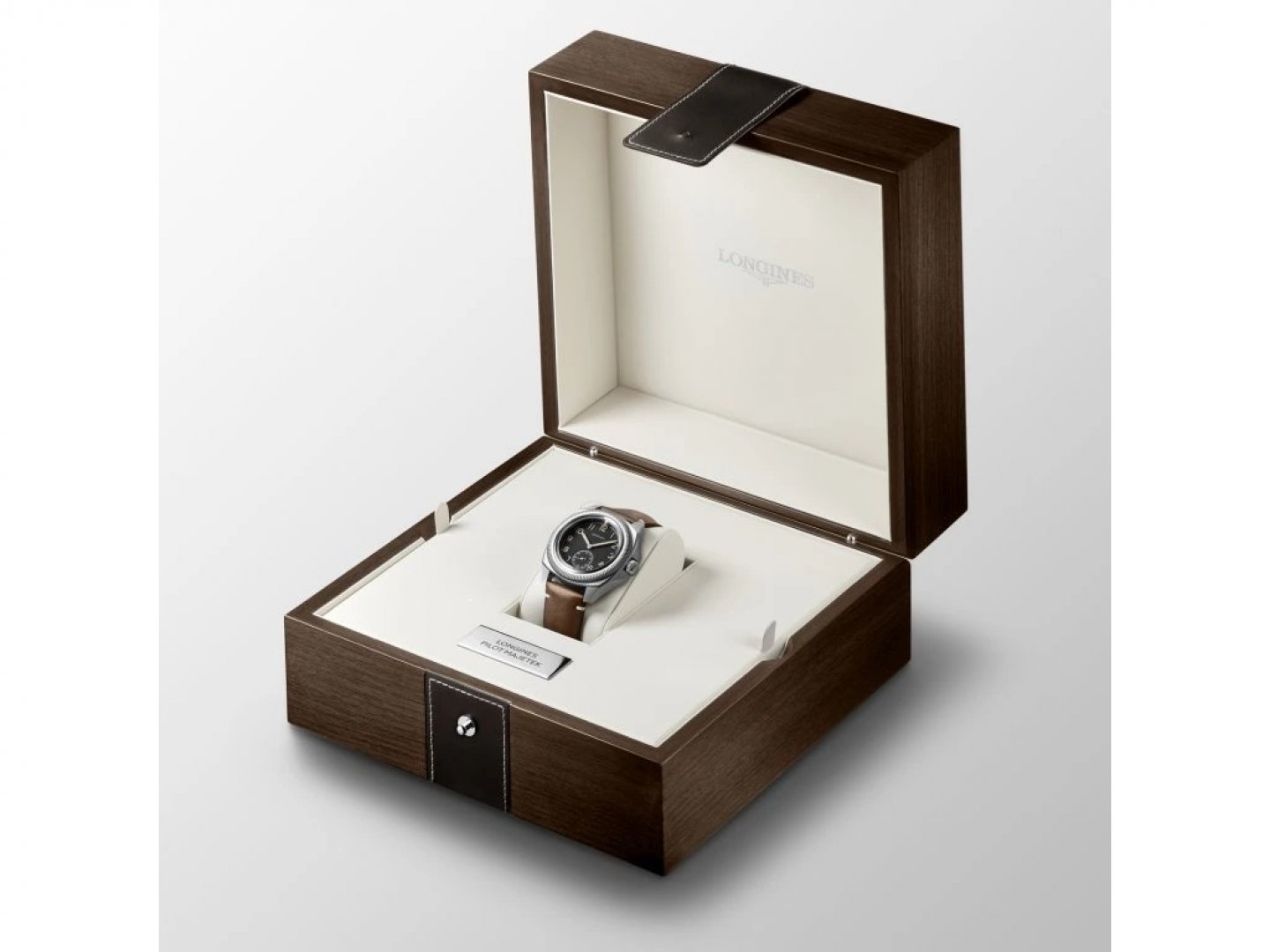 luxury watches Longines Heritage AVIGATION PILOT MAJETEK, Automatic, 43 MM. The watch has functions luminescence. Basic parameters of the watch are: dial colour is black, movement type is mechanical watch with automatic winding and chronometer, strap material is leather and water resistance is 100 m.