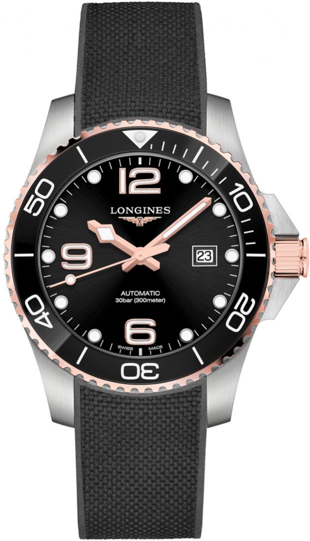 luxury watches Longines HydroConquest Ceramic Bezel, Automat, 43 mm. The watch has functions luminescence and date . Basic parameters of the watch are: water resistance is 300 m, movement type is mechanical watch with automatic winding, strap material is rubber and dial colour is black.