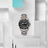 The unidirectional rotating bezel has a matte ceramic insert, which is coated with Super-LumiNova® for perfect readability in low light conditions. This is important for a diving watch, as adequate lighting conditions cannot be found at great depths.