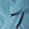The blue stone at the end of the cap clip evokes the petals of her favorite flower, the rose, while its color brings to mind the Aegean Sea off the Greek coast.