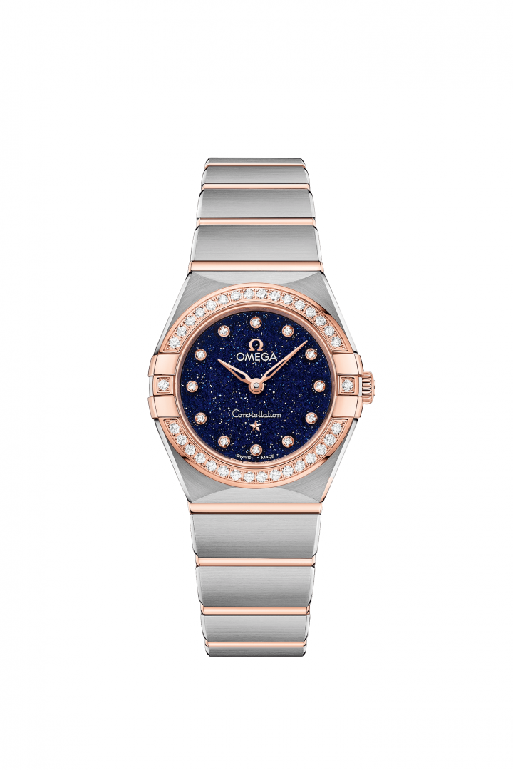 Luxury watches Omega Constellation Zlato & Diamanty, Quartz, 25 mm. Basic parameters of the watch are: movement type is Quartz watches, strap material is steel and gold, water resistance is 30 m and dial colour is blue.