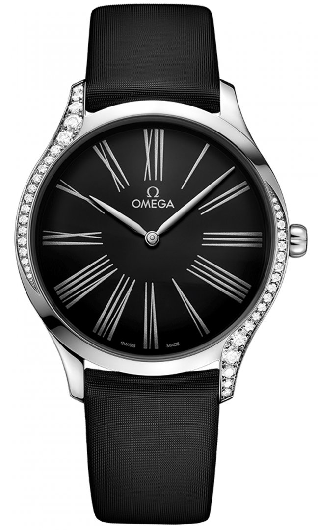 Luxury watches Omega De Ville Trésor Diamonds, Quartz, 36 mm. Basic parameters of the watch are: movement type is Quartz watches, strap material is leather, water resistance is 30 m and dial colour is black.