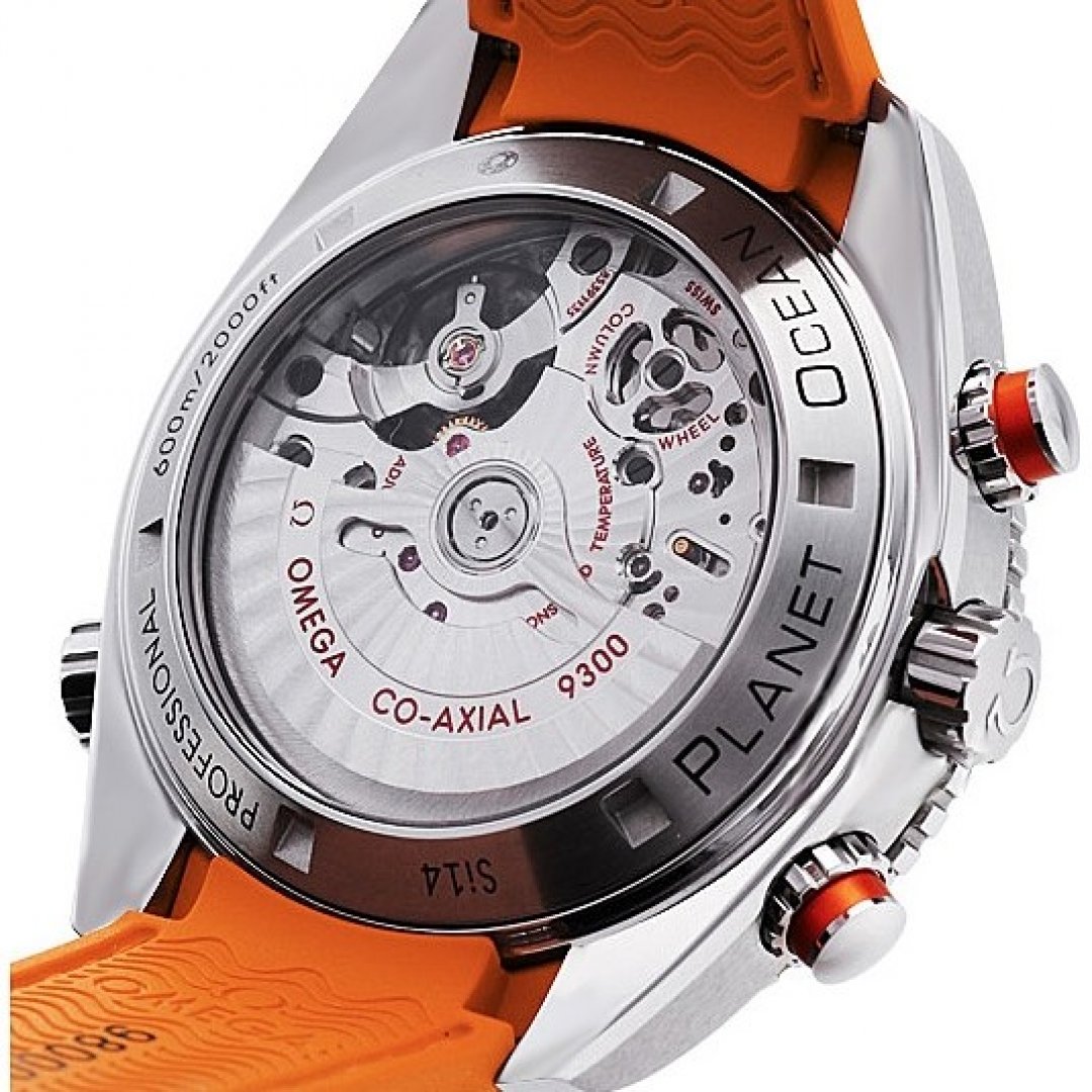 Luxury watches Omega Seamaster Planet Ocean 600M Water resistance 600M, Automatic Chronograph, 45.5 mm. The watch has functions Helium release valve, luminescence, date and stopwatch. Basic parameters of the watch are: water resistent is 600 m, dial colour is black, movement type is mechanical chronograph with automatic winding and strap material is rubber.