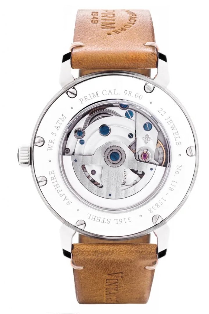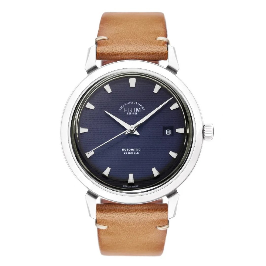 luxury watches Prim Manufacture PAVOUK 40 In-house movement, Automatic, 40 mm. The watch has functions date . Basic parameters of the watch are: dial colour is blue, movement type is mechanical watch with automatic winding, strap material is leather and water resistance is 50 m.
