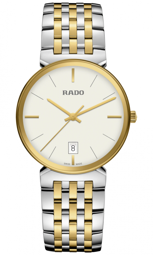 luxury watches luxury watches Rado Florence Quartz, 38 mm. The watch has functions date and E.O.L.. Basic parameters of the watch are: dial colour is beige, movement type is Quartz watches, strap material is steel and water resistance is 50 m.