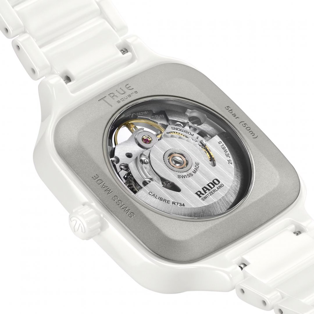 luxury watches luxury watches Rado True SQUARE AUTOMATIC OPEN HEART Automatic, 38 mm. The watch has functions luminescence. Basic parameters of the watch are: movement type is mechanical watch with automatic winding, strap material is ceramics and titanium, water resistance is 50 m and dial colour is transparent.