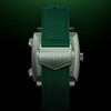 The watch is powered by a Calibre 11 automatic chronograph movement, enclosed in a sandblasted grade 2 titanium case measuring 39 mm in diameter, making it both durable and lightweight, perfect for a sporty look. It features a sapphire crystal case back, allowing a glimpse of the movement inside. The TAG Heuer Monaco Chronograph Racing Green features a green perforated strap, in keeping with the classic British gentleman's look. The strap is secured by a titanium folding clasp bearing the vintage Heuer logo.