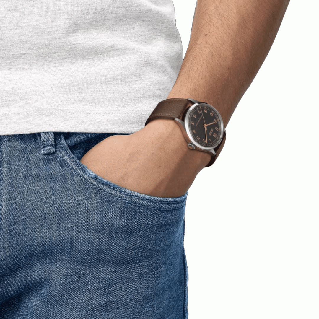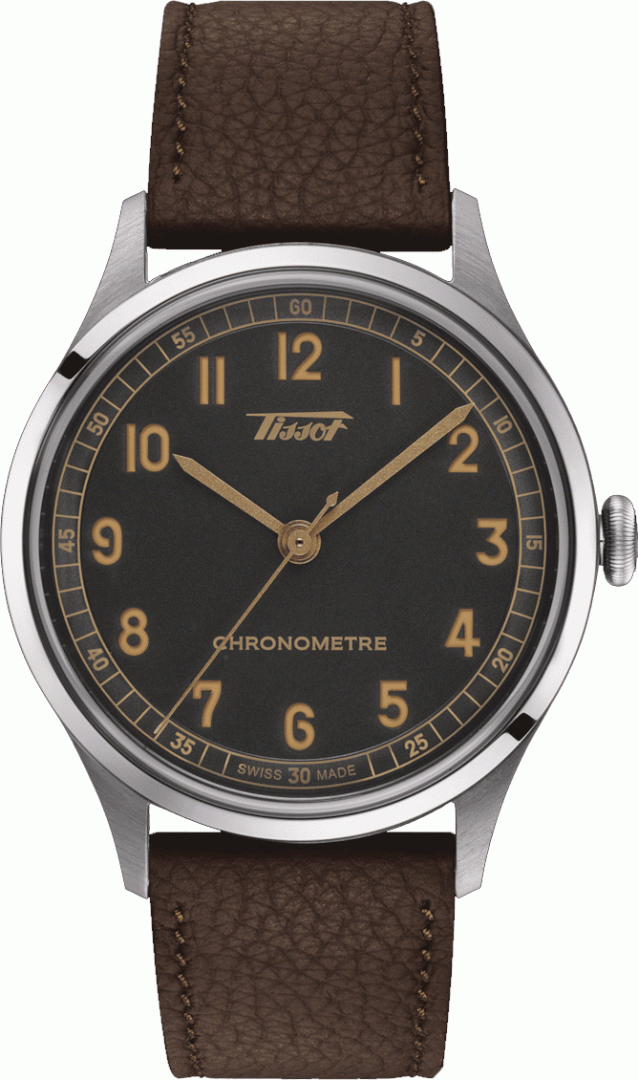luxury watches Tissot Heritage 1938 Automatic Chronometer Automatic, 39 mm. Basic parameters of the watch are: dial colour is black, movement type is mechanical watch with automatic winding, strap material is leather and water resistance is 50 m.