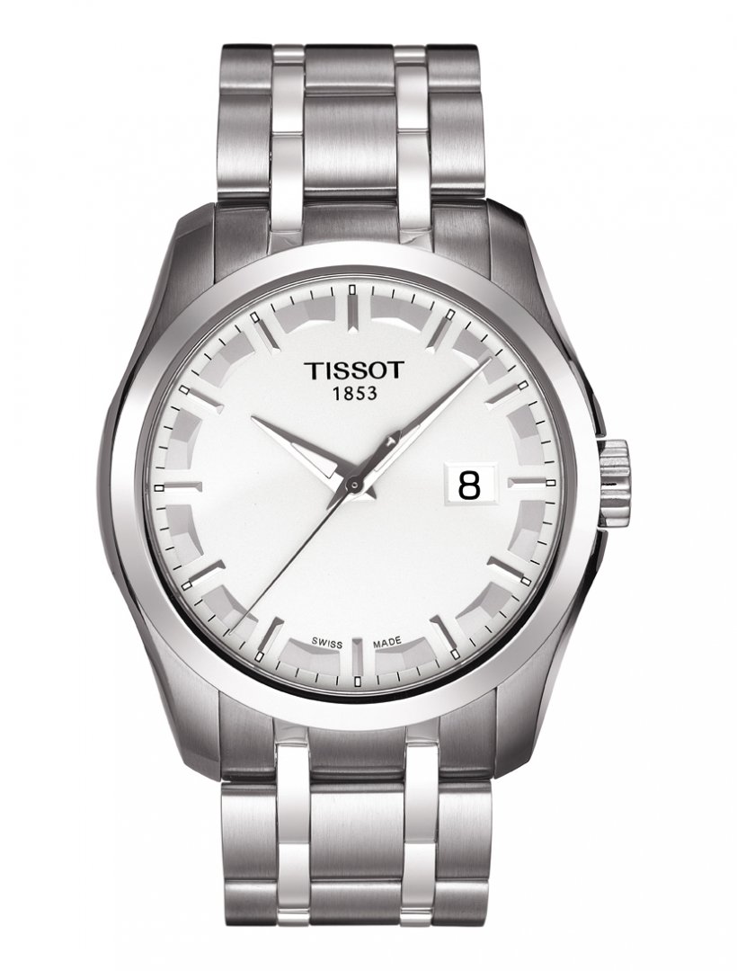 Luxury watches Tissot T-Classic COUTURIER, Quartz, 39 mm. The watch has functions date . Basic parameters of the watch are: water resistent is 100 m, dial colour is white, movement type is Quartz watches and strap material is steel.