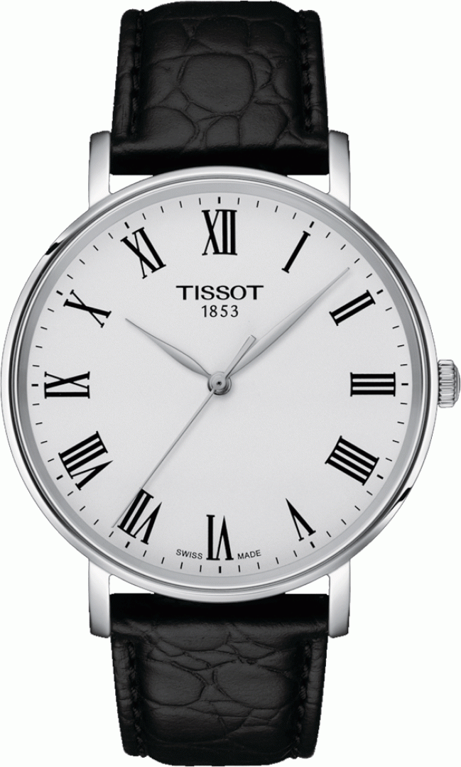 luxury watches Tissot T-Classic EVERYTIME GENT Quartz, 40 mm. Basic parameters of the watch are: dial colour is silver, movement type is Quartz watches, water resistance is 50 m and strap material is leather.