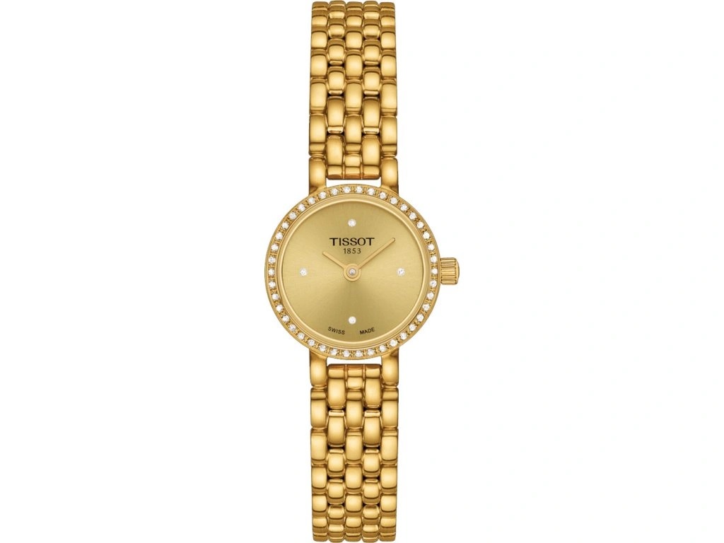luxury watches Tissot T-Lady LOVELY Diamonds, Quartz, 20 mm. Basic parameters of the watch are: movement type is Quartz watches, strap material is steel, water resistance is 30 m and dial colour is golden.