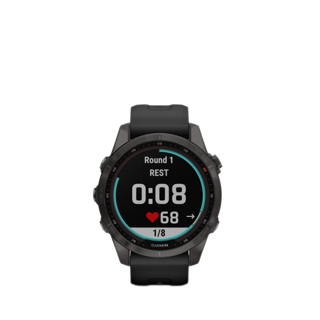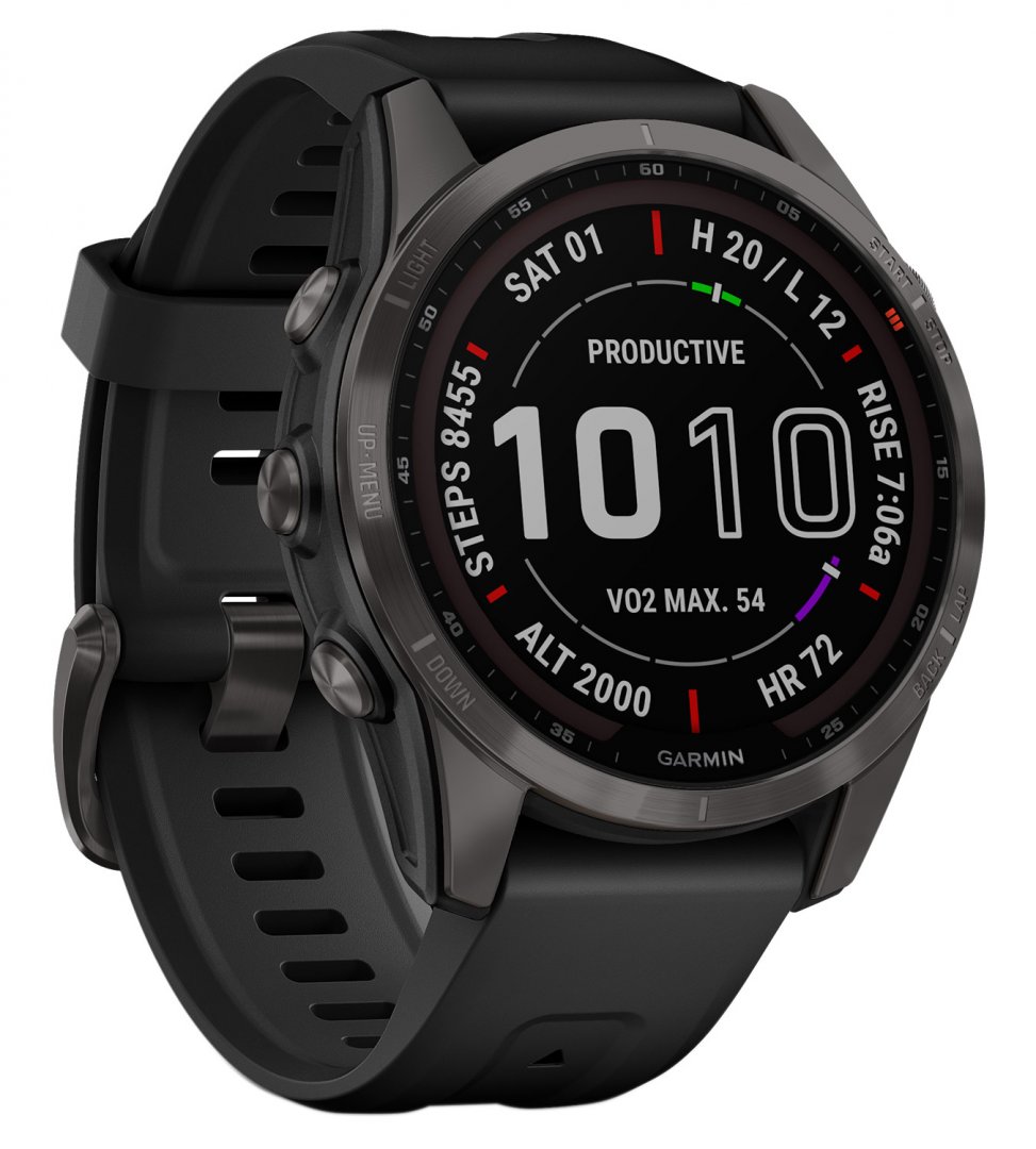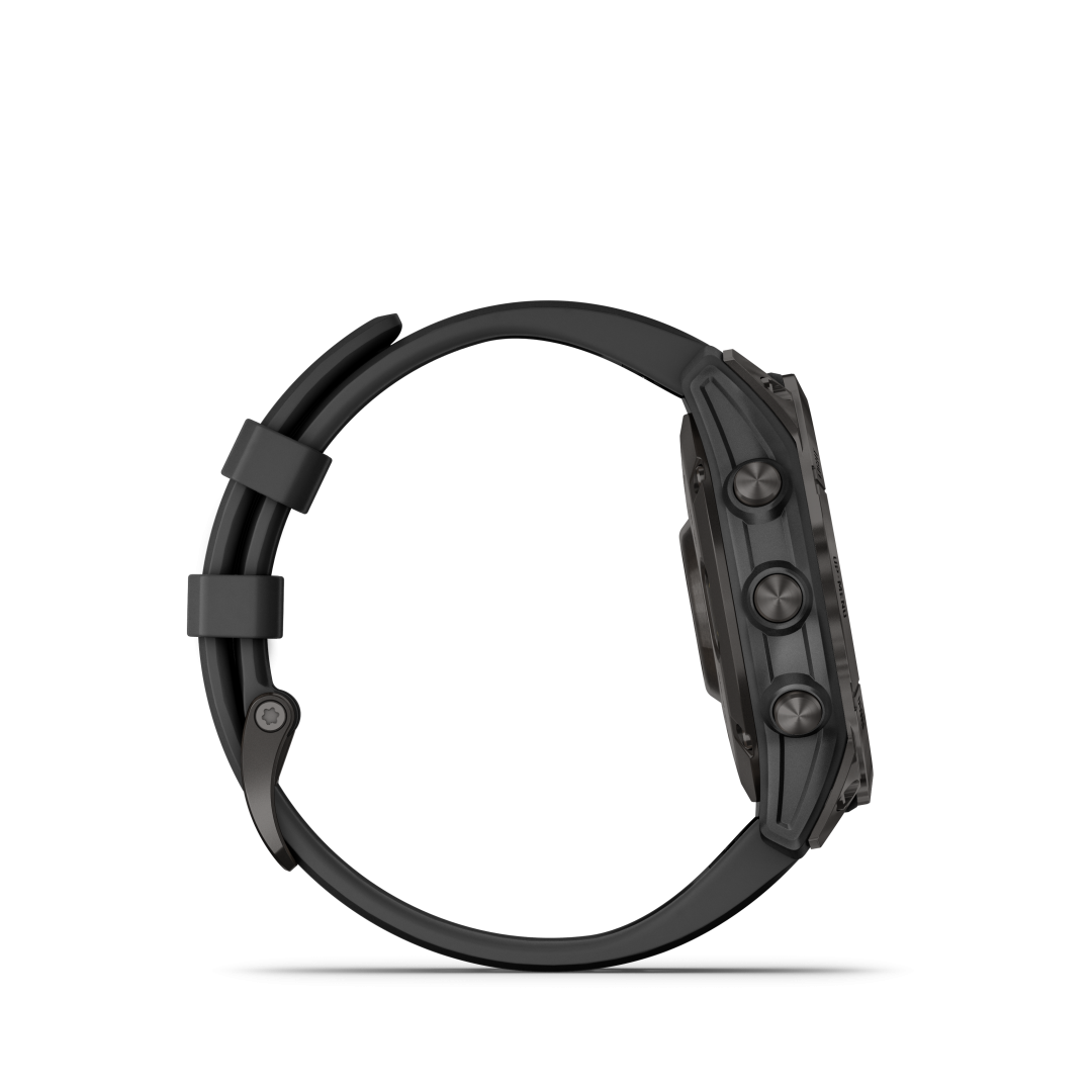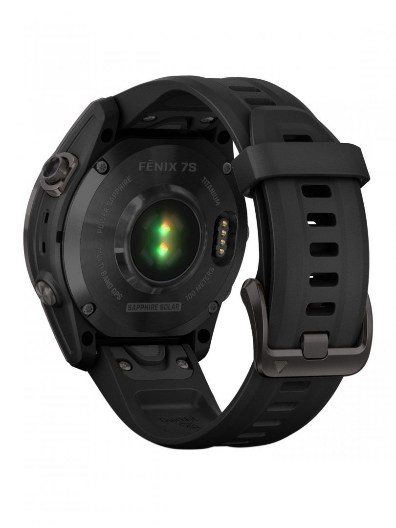 športové hodinky Garmin Fénix 7 S Sapphire Solar, Carbon Gray DLC Titanium, Black Band 42 mm, Dotykový displej, Solar. Hodinky disponujú funkciami alarm, barometer, GPS, hĺbkomer, kalendár, kompas, monitor srdečného tepu, osvetlenie, odpočítavanie času, stopky, svetové časy, tachymeter, teplomer, tréningové funkcie, ukazovateľ dátumu, večný kalendár, výškomer, multifunkčné, GPS , GLONASS , GALILEO, Akcelerometer, Garmin Pay™, Vysoko-citlivý prijímač, Možnosť dohrávania máp, Bluetooth®, Wi-Fi®, MP3 prehrávač, Dotyková obrazovka a Strava segmenty. Základné parametre hodín sú: typ strojčeka je špeciálne, materiál remienka je silikon a vode odolnosť je 100 m.