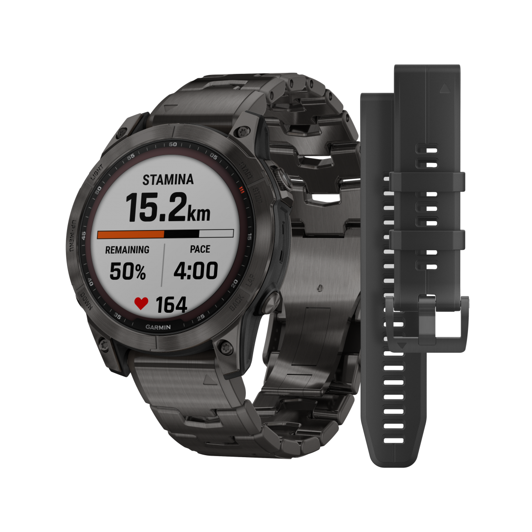 športové hodinky Garmin Fénix 7 Sapphire Solar, Carbon Gray DLC Titanium, Titanium Band 47 mm, Dotykový displej, Solar. Hodinky disponujú funkciami alarm, barometer, GPS, hĺbkomer, kalendár, kompas, monitor srdečného tepu, osvetlenie, odpočítavanie času, stopky, svetové časy, tachymeter, teplomer, tréningové funkcie, ukazovateľ dátumu, večný kalendár, výškomer, multifunkčné, GPS , GLONASS , GALILEO, Akcelerometer, Garmin Pay™, Vysoko-citlivý prijímač, Možnosť dohrávania máp, Bluetooth®, Wi-Fi®, MP3 prehrávač, Dotyková obrazovka a Strava segmenty. Základné parametre hodín sú: typ strojčeka je špeciálne, materiál remienka je silikon a titan a vode odolnosť je 100 m.