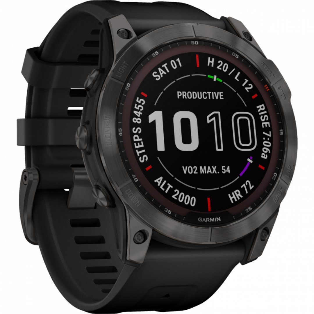 športové hodinky Garmin Fénix 7 X Sapphire Solar, Carbon Gray DLC Titanium, Black Band 51 mm, Dotykový displej, Solar. Hodinky disponujú funkciami alarm, barometer, GPS, hĺbkomer, kalendár, kompas, monitor srdečného tepu, osvetlenie, odpočítavanie času, stopky, svetové časy, tachymeter, teplomer, tréningové funkcie, ukazovateľ dátumu, večný kalendár, výškomer, multifunkčné, GPS , GLONASS , GALILEO, Akcelerometer, Garmin Pay™, Vysoko-citlivý prijímač, Možnosť dohrávania máp, Bluetooth®, Wi-Fi®, MP3 prehrávač, Dotyková obrazovka a Strava segmenty. Základné parametre hodín sú: typ strojčeka je špeciálne, materiál remienka je silikon a vode odolnosť je 100 m.