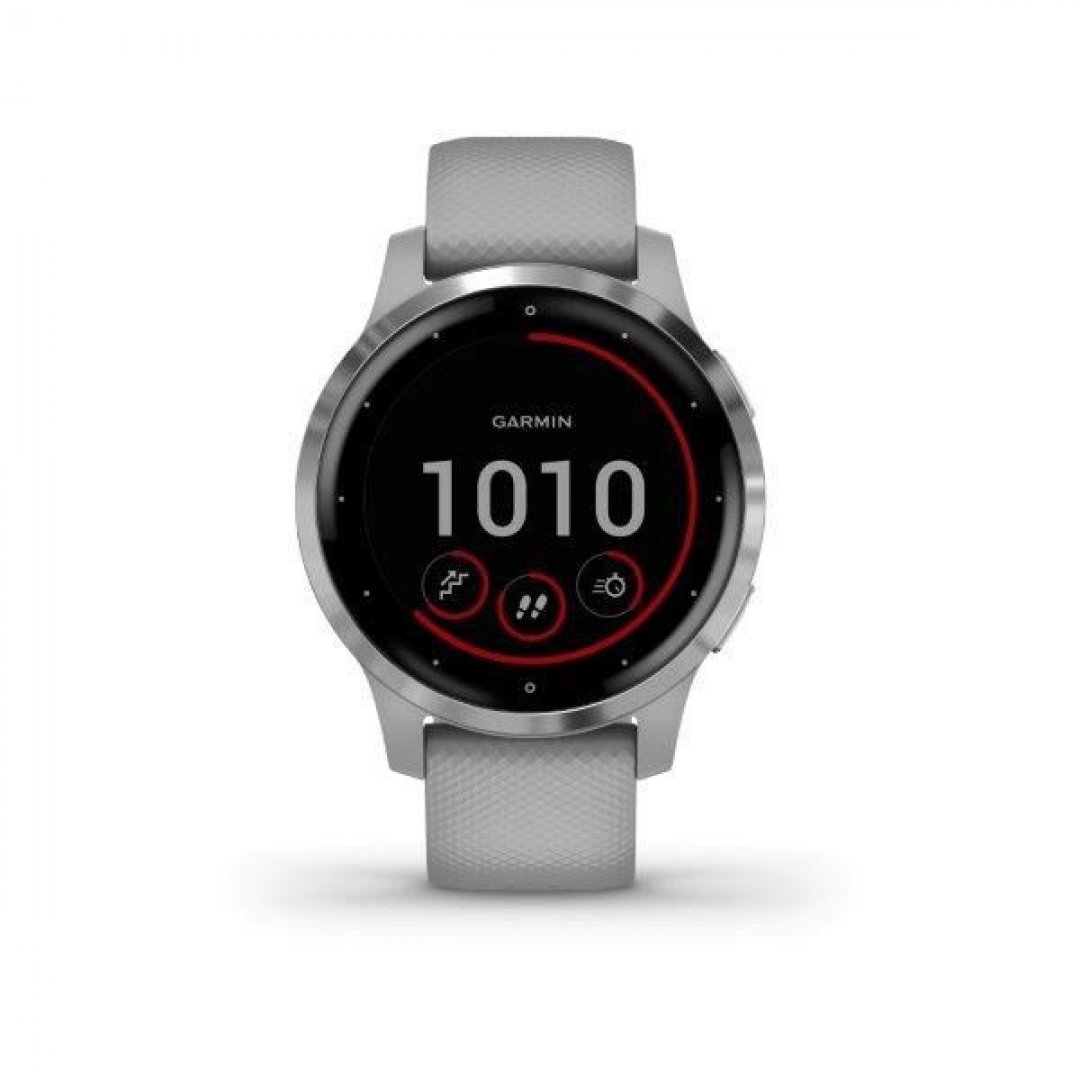 Smart hodinky športové hodinky Garmin Vivoactive 4S Powder Gray/Silver 40 mm, Corning Gorilla® Glass, Vode odolnosť 50M. Hodinky disponujú funkciami alarm, barometer, GPS, kalendár, kompas, monitor srdečného tepu, stopky, tréningové funkcie, ukazovateľ dátumu, multifunkčné, GPS , GLONASS , GALILEO, Akcelerometer, Garmin Pay™, Vysoko-citlivý prijímač, Bluetooth®, Wi-Fi®, MP3 prehrávač a Dotyková obrazovka. Základné parametre hodín sú: typ strojčeka je špeciálne, materiál remienka je silikon a vode odolnosť je 50 m.