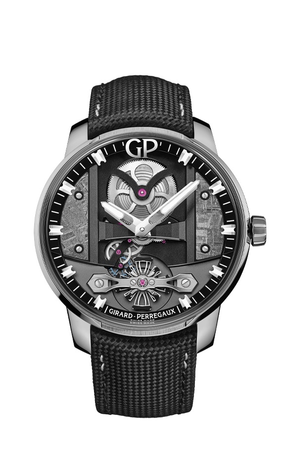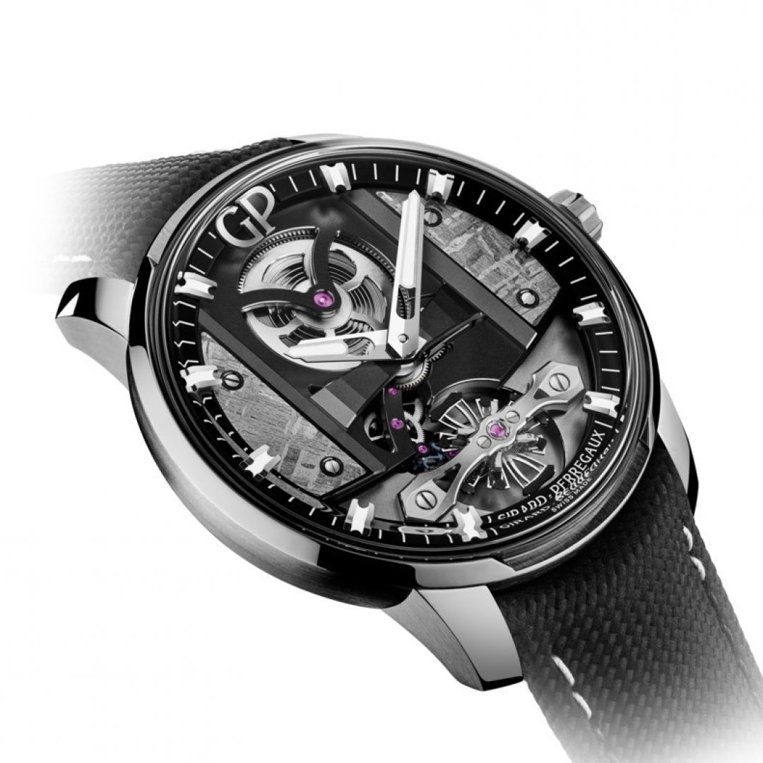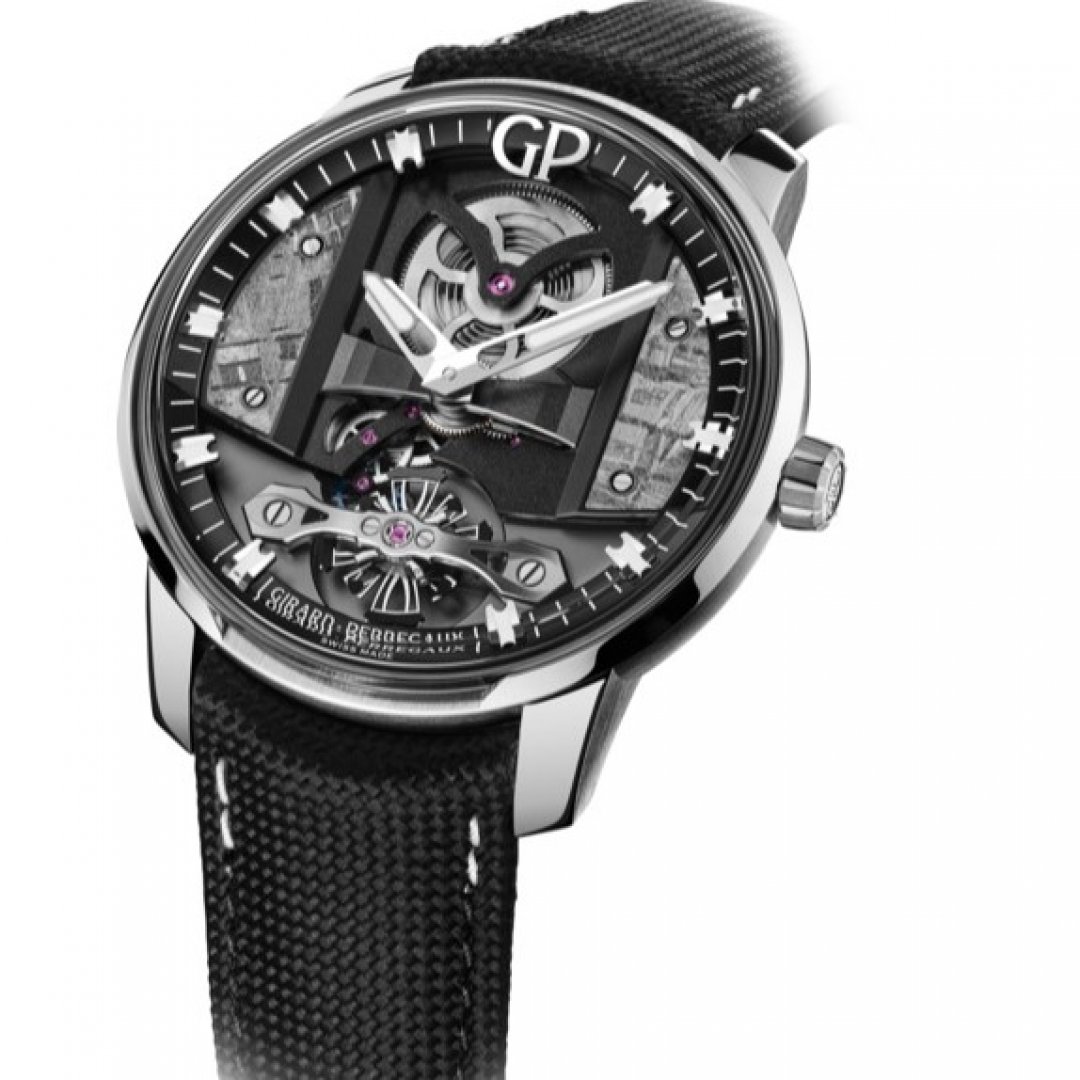 luxusné hodinky Girard-Perregaux Bridges FREE BRIDGE METEORITE Manufaktúrny kaliber, Automat, 44 mm. Hodinky disponujú funkciami luminiscencia. Základné parametre hodín sú: farba ciferníka je priehľadná, typ strojčeka je mechanické hodinky s automatickým náťahom, materiál remienka je koža a vode odolnosť je 30 m.