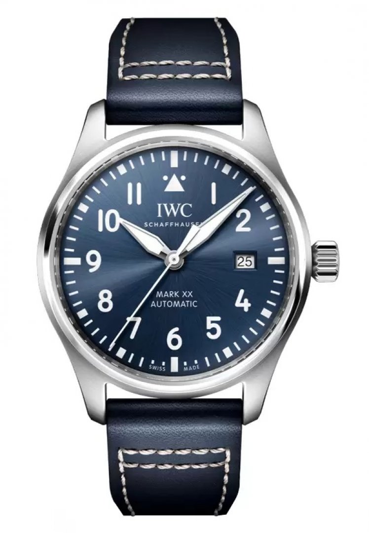 luxusné hodinky IWC Schaffhausen Pilot´s Watches Mark XX Automat, Vode odolnosť 100M, 40 mm. Hodinky disponujú funkciami luminiscencia a ukazovateľ dátumu. Základné parametre hodín sú: typ strojčeka je mechanické hodinky s automatickým náťahom, materiál remienka je koža, vode odolnosť je 100 m a farba ciferníka je modrá.