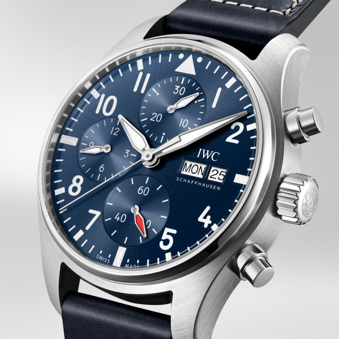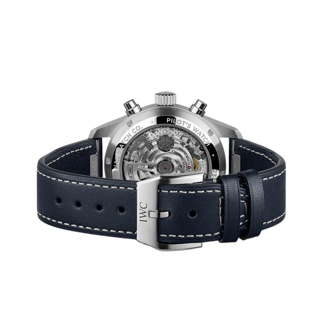Luxusné hodinky IWC Pilot´s Watches CHRONOGRAPH 41 Manufaktúrny kaliber, 41 mm. Hodinky disponujú funkciami luminiscencia, stopky a ukazovateľ dátumu. Základné parametre hodín sú: farba ciferníka je modrá, typ strojčeka je mechanický chronograf s automatickým náťahom, materiál remienka je koža a vode odolnosť je 100 m.