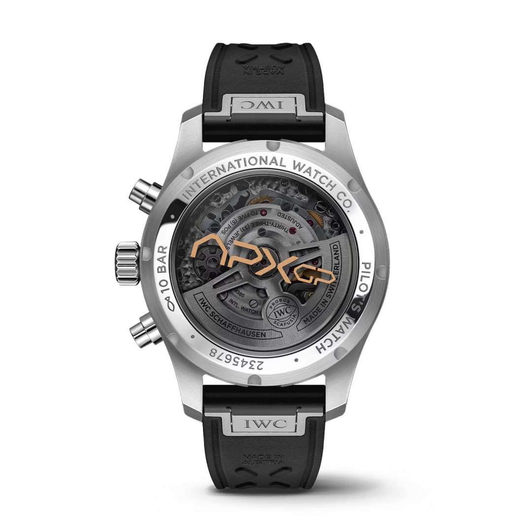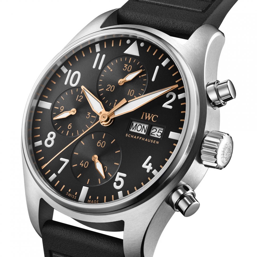 luxusné hodinky IWC Schaffhausen Pilot´s Watches PILOT'S WATCH Chronograph 41 Chronograph 41mm APXGP Manufaktúrny kaliber, 41 mm. Hodinky disponujú funkciami luminiscencia, stopky, ukazovateľ dátumu a Day-Date. Základné parametre hodín sú: typ strojčeka je mechanický chronograf s automatickým náťahom, vode odolnosť je 100 m, farba ciferníka je čierna a materiál remienka je kaučuk.