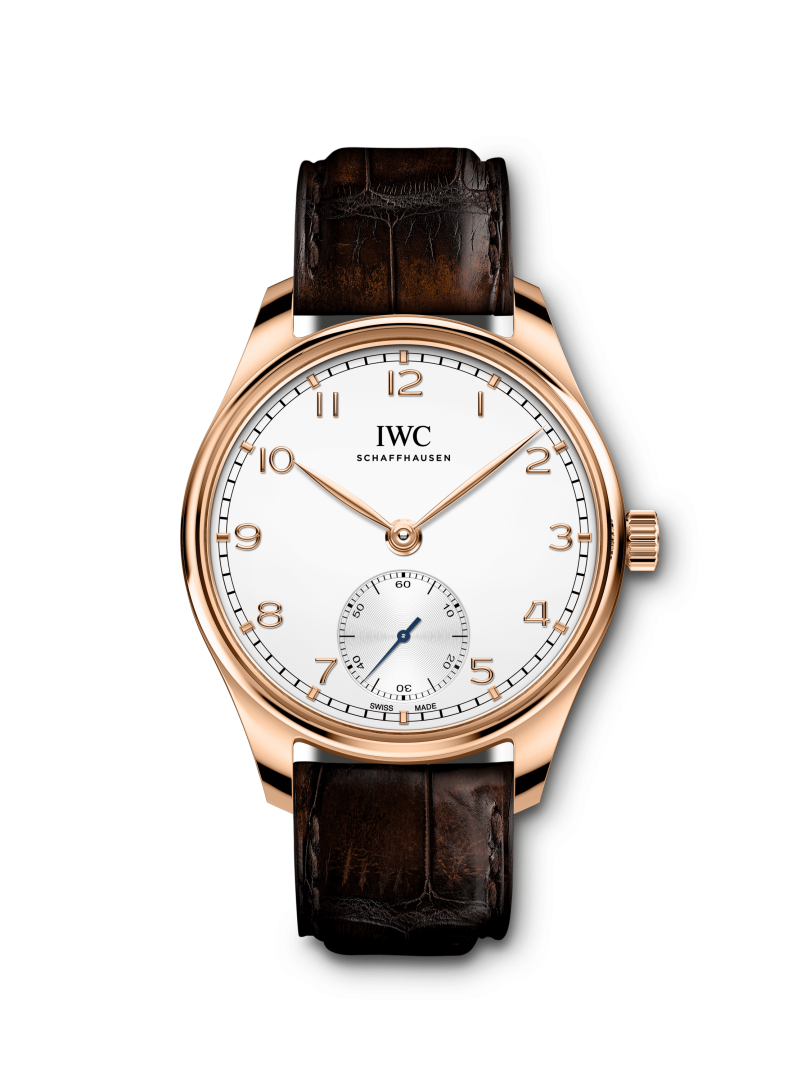 Luxusné hodinky IWC Portugieser AUTOMATIC 40 Manufaktúrny kaliber, 40.4 mm. Základné parametre hodín sú: materiál remienka je koža, vode odolnosť je 30 m, typ strojčeka je mechanické hodinky s automatickým náťahom a farba ciferníka je biela.