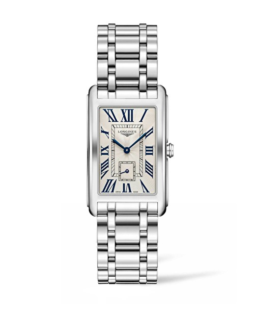 luxusné hodinky luxusné hodinky Longines DolceVita Automat, 27.7mm X 43.8mm. Hodinky disponujú funkciami ukazovateľ dátumu. Základné parametre hodín sú: vode odolnosť je 30 m, typ strojčeka je mechanické hodinky s automatickým náťahom, farba ciferníka je strieborná a materiál remienka je oceľ.