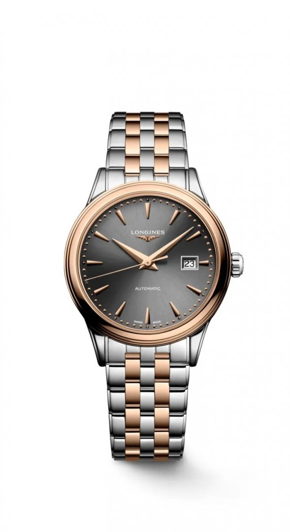 luxusné hodinky Longines Flagship Automat, 30 mm. Hodinky disponujú funkciami ukazovateľ dátumu. Základné parametre hodín sú: farba ciferníka je šedá, typ strojčeka je mechanické hodinky s automatickým náťahom, materiál remienka je oceľ a vode odolnosť je 30 m.