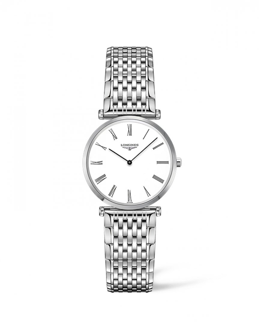 Luxusné hodinky Longines La Grande Classique de Longines Quartz, Ultra tenké, 29 mm. Základné parametre hodín sú: farba ciferníka je biela, typ strojčeka je Quartz hodinky, materiál remienka je oceľ a vode odolnosť je 30 m.