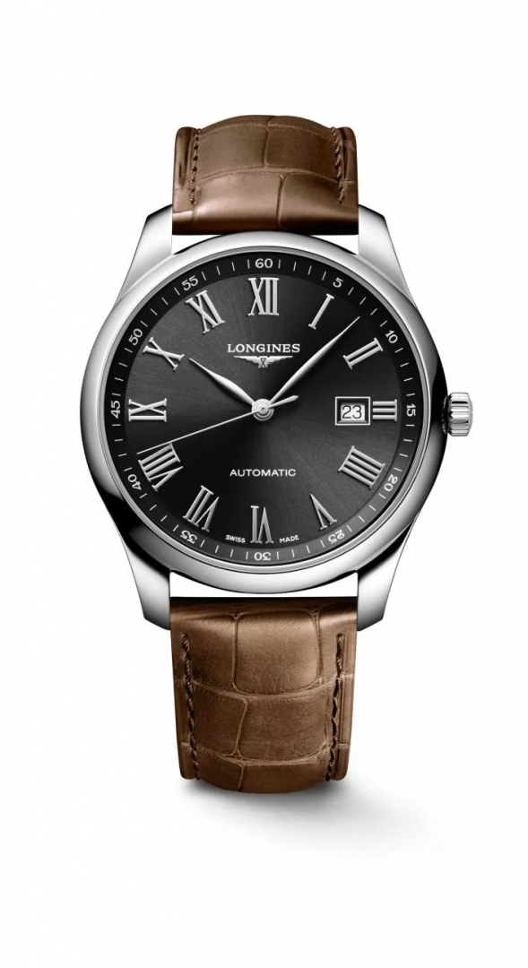 luxusné hodinky Longines Master Collection Automat, 42 mm. Hodinky disponujú funkciami ukazovateľ dátumu. Základné parametre hodín sú: typ strojčeka je mechanické hodinky s automatickým náťahom, vode odolnosť je 50 m, farba ciferníka je šedá a materiál remienka je koža.