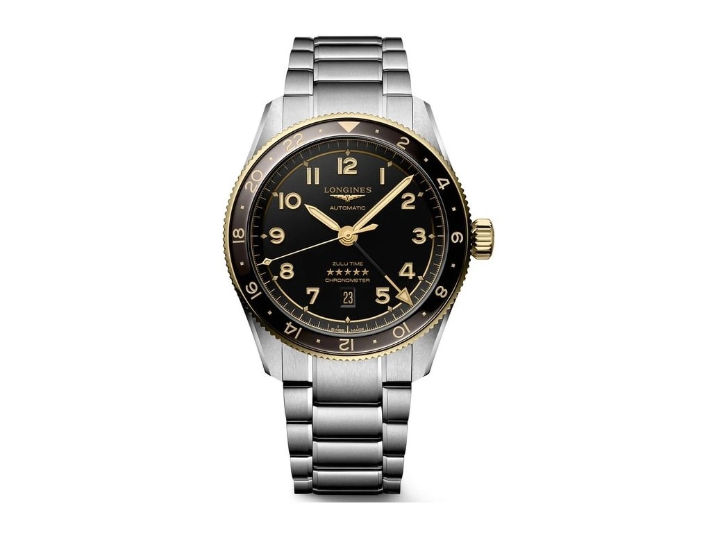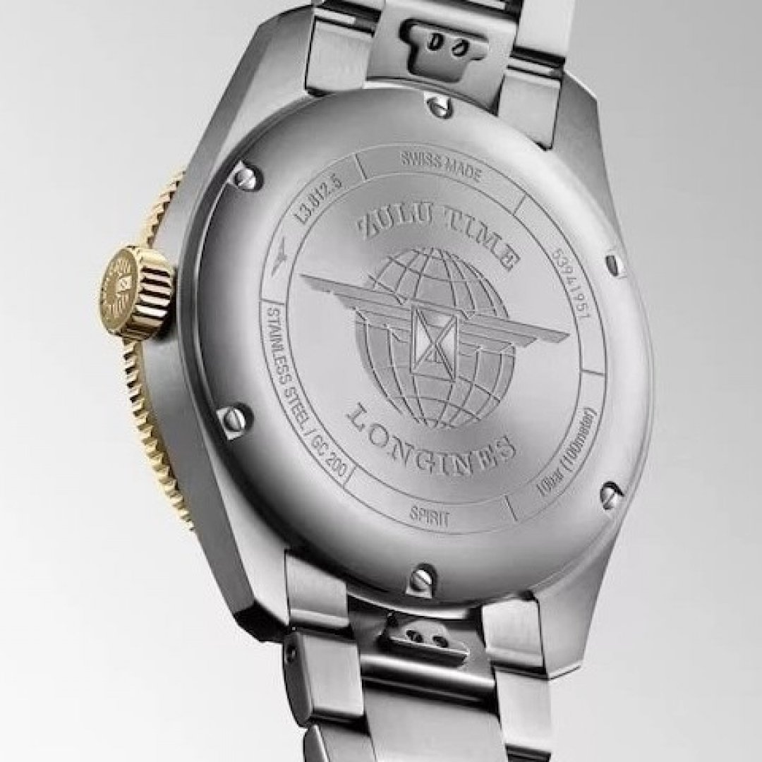 luxusné hodinky Longines Spirit Zulu Time GMT, Automat, Vode odolnosť 100M, 42 mm. Hodinky disponujú funkciami duálny čas, luminiscencia a ukazovateľ dátumu. Základné parametre hodín sú: farba ciferníka je čierna, typ strojčeka je mechanické hodinky s automatickým náťahom, vode odolnosť je 100 m a materiál remienka je oceľ.