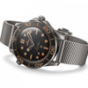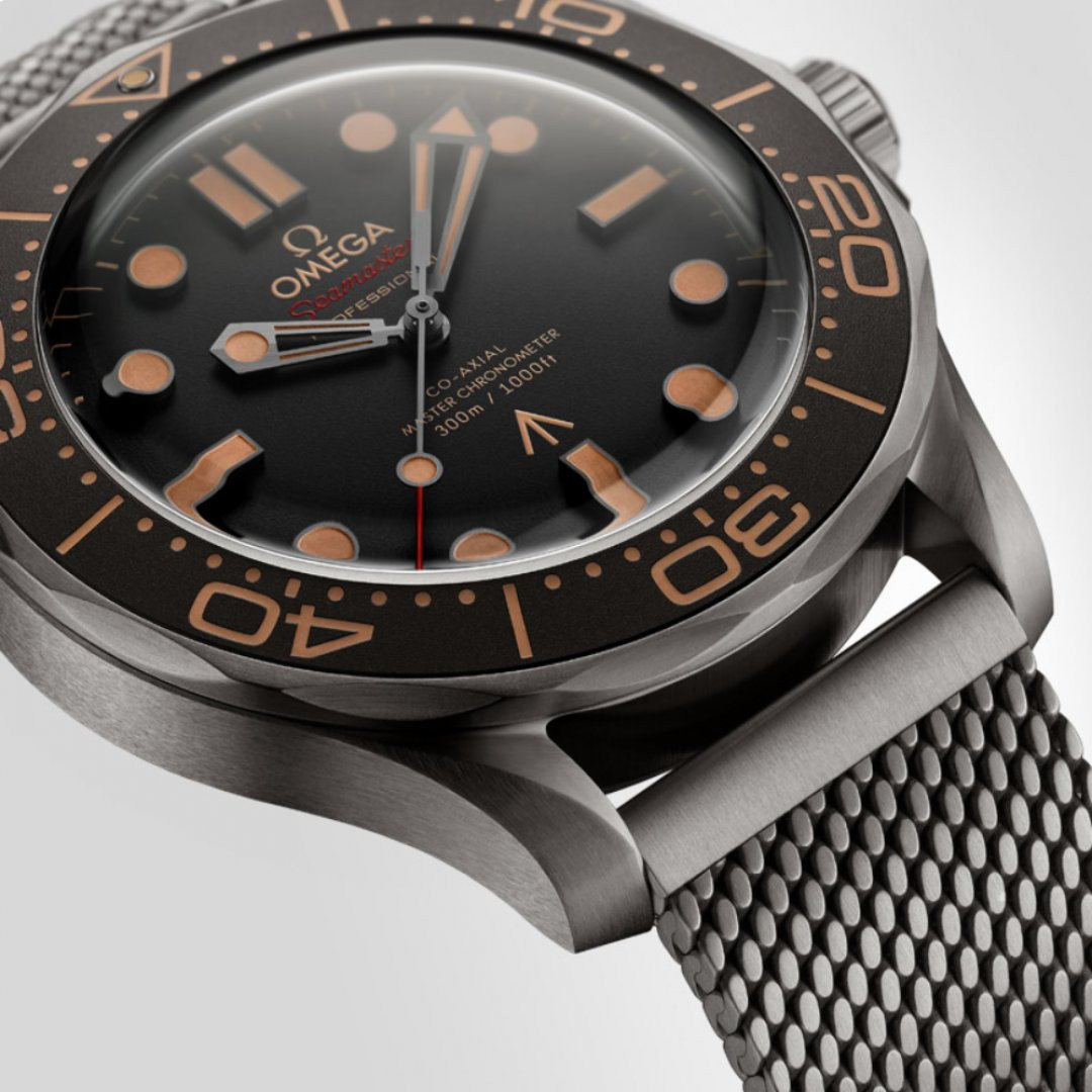 Jediné slovo, ktoré ma napadlo, keď som ich prvý krát videl bolo: moderné, odvážne, extravagantné. To sú tri slová, viem. Ale čím dlhšie som sa na hodinky pozeral tým viac slov mi prichádzalo na jazyk. Tak sa v tom poďme trochu zorientovať. Úplne prvá devíza na ktorú spoločnosť Omega vsádzala je váha hodín. Puzdro a mesh náramok sú zhotovené z titánu triedy 2. V snahe znížiť hmotnosť hodín na minimum zašli hodinári ešte ďalej a číselník s lunetou vyrobili z špeciálne odľahčeného hliníka. Nízka váha bola jedna z pripomienok samotného Daniela Craiga, ktorý sa na vývoji časomiery podieľal.