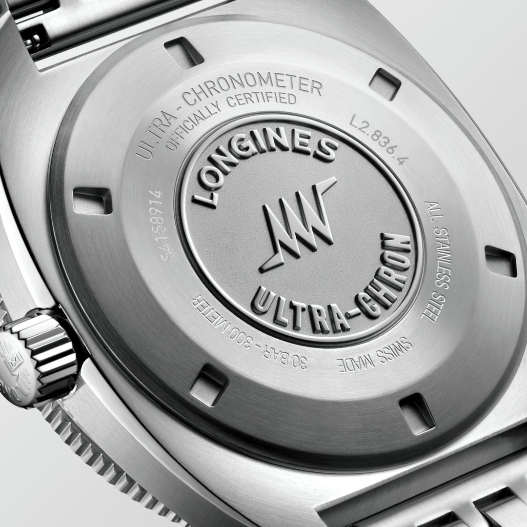 Longines Ultra-chron je inšpirovaný profesionálnymi potápačskými hodinkami z roku 1968, a to nielen po vizuálnej stránke, ale aj po stránke technickej. K základným prednostiam patrí vysokofrekvenčný kaliber L836.6, ktorého kremíkový vlások osciluje rýchlosťou 36 000 úderov za minútu (10 úderov za sekundu). Frekvencia zvýšená na 5 Hz zaručuje vyššiu presnosť hodín, ktorú si Longines nechal otestovať nezávislým testovacím laboratóriom Timelab sídliacim v Ženeve. Samotný názov Ultra-chron vychádza z certifikátu Ultra-chronometer, ktorý sa riadi ešte prísnejšími normami ako „štandardný“ chronometer. Rezerva chodu je dostačujúcich 52 hodín a vodotesnosť 300 metrov. Toľko k technickej stránke hodín.
