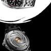 Keramický ciferník je upravený tak, aby pripomínal pohľad cez hlaveň; ohraničený stred má presný priemer 9 mm. S rovnakým symbolom sme sa už stretli dávnejšie, keď Omega predstavila model na 50. výročie Jamesa Bonda ako takého - rovnako bol použitý model Diver, ten starší, a na zadnom viečku ste mohli taktiež vidieť vŕtanú hlaveň a otáčajúci sa rotor s 9 mm nábojom. Osobne si pamätám, že sme objednali 5 ks do skladu, dostali sme 3 a behom 3 dní sme všetko predali, išlo o limitovanú edíciu 11007 ks. (druhá fotka pod textom)