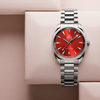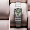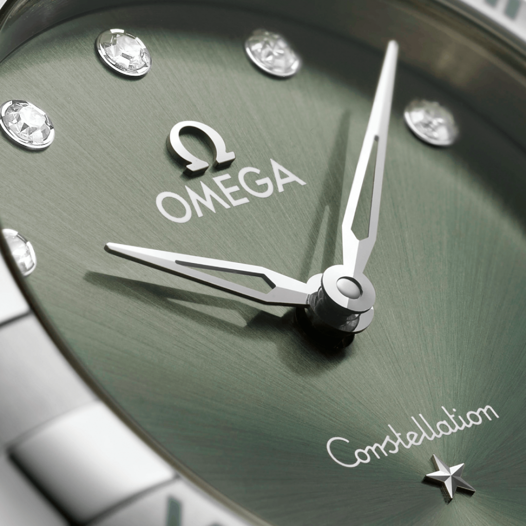 Pre dámy, ktoré hľadajú niečo univerzálnejšie a menej okázalé, tu je a vždy bola Omega Constellation s priemerom 28 mm s batériovým pohonom. Batériový pohon sa odráža nielen na pohodlnej „údržbe“, čo mnoho dám ocení, ale aj na konečnej hrúbke 8,48 mm. Model bude dostupný v štyroch farebných vyhotoveniach so sunburst efektom, ktorý však nevychádza zo stredu, ale práve od hviezdy umiestnenej nad šestkou. Rímske číslice nalunete si osvojili farebnosť ciferníka. O pohon sa bude starať quartz OMEGA Caliber 4061.