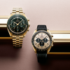 Bez ohľadu na to, čo sa hovorí, ja zlaté hodinky môžem. Hlavne, keď sa k legende, akou je Moonwatch, pridá retro look vďaka novej generácii náramkov Speedmaster. Puzdro bude vyrobené zo zliatiny Moonsihine Gold. Moonshine Gold je zliatina vytvorená v roku 2019 exkluzívne pre spoločnosť Omega. Pomer surovín je nasledovný: Zlato 75 %, Striebro 14,5 %, Meď 9, Paládium 1 %. Dostupné budú dva varianty, full-gold so zeleným ciferníkom PVD a model so zlatým ciferníkom na koži. O pohon stará OMEGA Co-Axial Master Chronometer Caliber 3861 s ručným náťahom a rezervou chodu 50 hodín