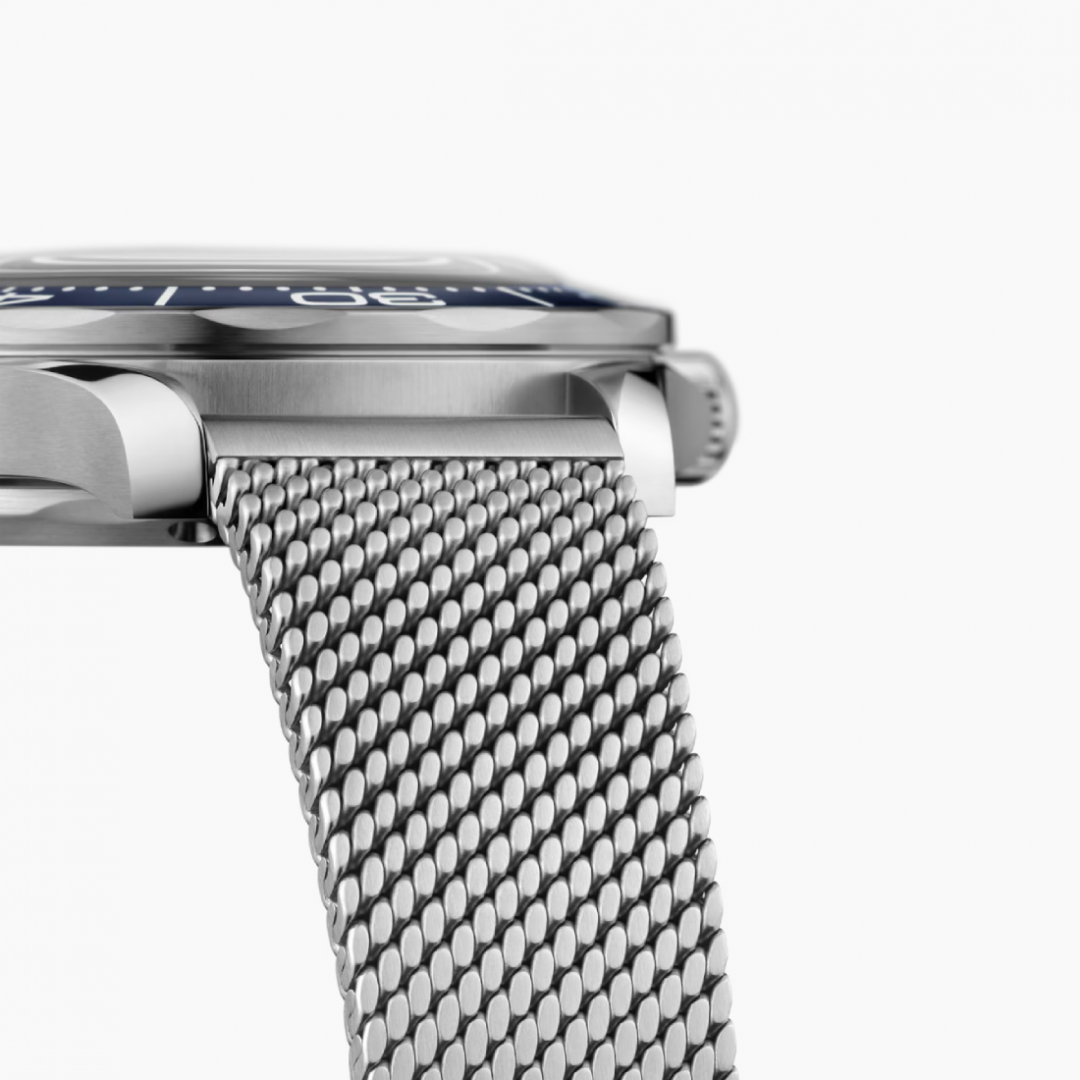Brúsený “mesh” náramok z nehrdzavejúcej ocele je v rovnakom prevedení ako majú Bondove titánové hodinky vo filme Nie je čas zomrieť.