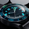 Hliníkový ciferník má modrý oxalátový povrch nanesený anodizáciou. Laserom gravírované vlny sú inšpirované hodinkami, ktoré mal James Bond vo filme Zlaté oko z roku 1995.