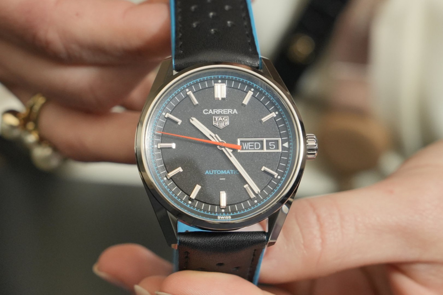 Dizajnové úpravy robia model Carrera ešte atraktívnejším. Minútová stupnica na okraji číselníka bola nahradená dvojitou stupnicou s luminiscenčnými bodkami na hodinových indexoch. Novinkou je aj šipka na pozícii 3, ktorá zvýrazňuje ukazovateľ dňa a dátumu – ten je navyše vo farbe číselníka, čím pôsobí vizuálne jednotne. Veľkým prekvapením je nádherná červená burgundy varianta číselníka, ktorá dodáva hodinkám dynamický vzhľad.