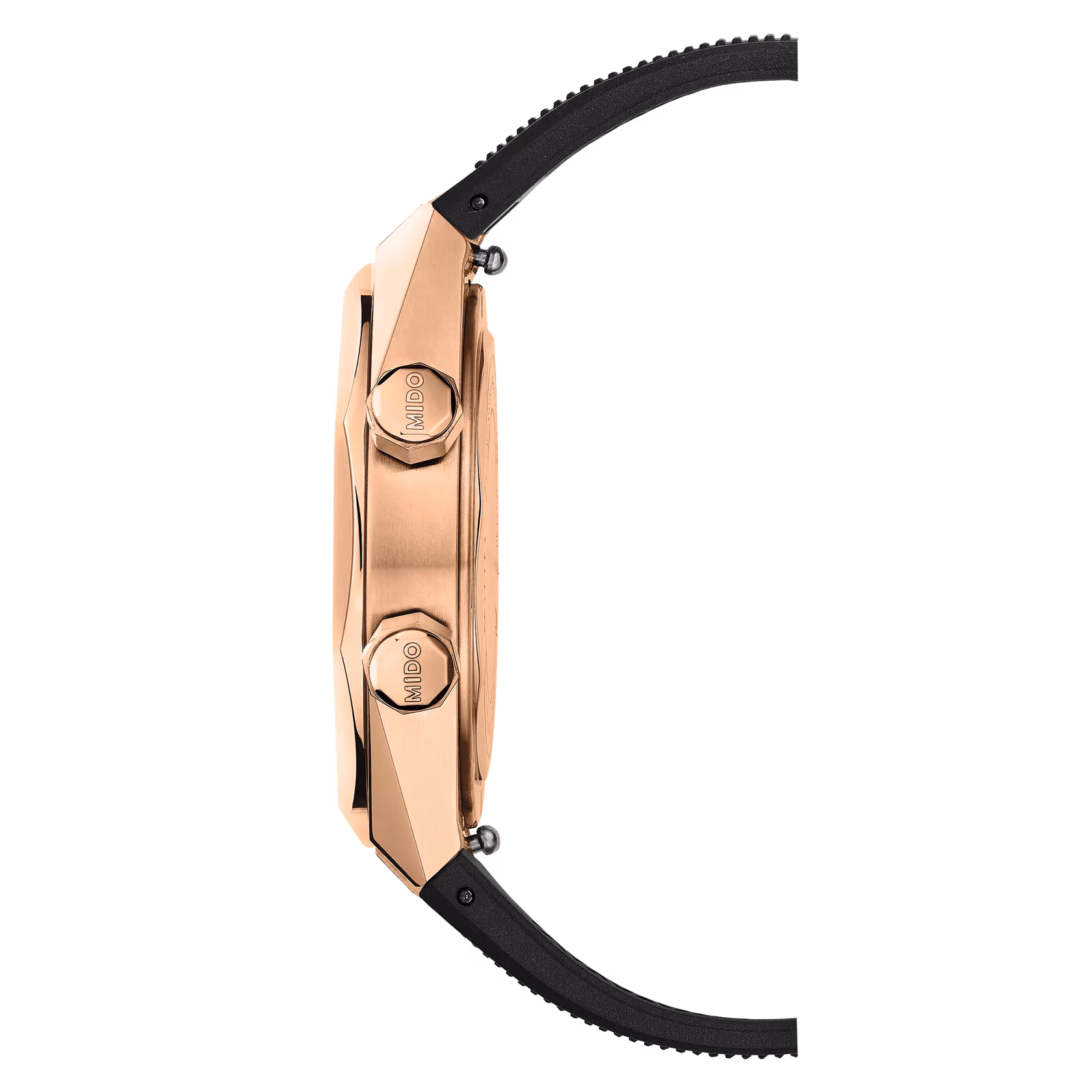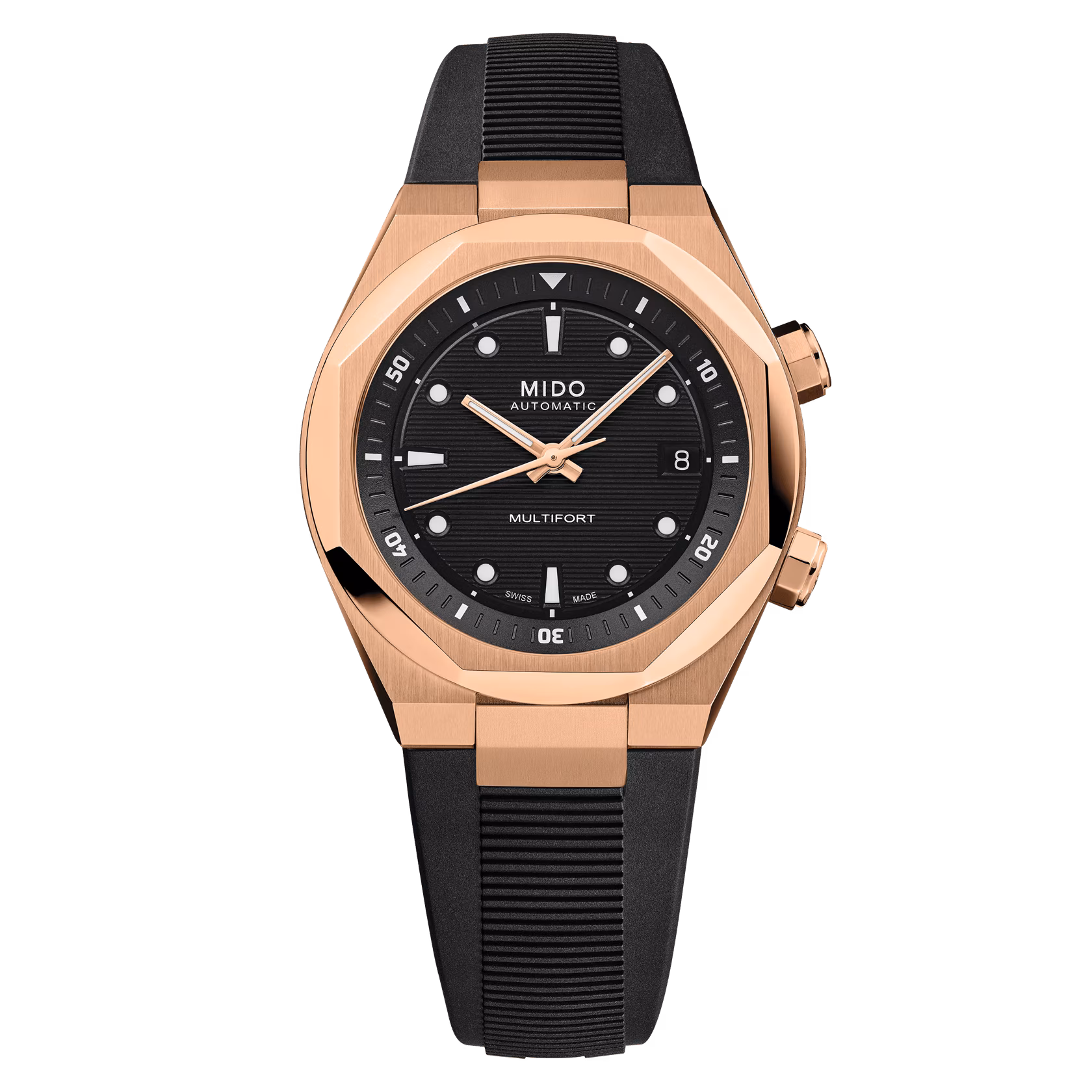 Mido Multifort 8 Two Crowns M047.507.37.051.00 predstavuje nový rozmer športovej elegancie – spája technológiu, geometriu a moderný dizajn do jedného výnimočného celku. Osmihranná luneta, dvojica koruniek a horizontálne štruktúrovaný ciferník vytvárajú výrazný vizuálny podpis, ktorý okamžite upúta pozornosť.