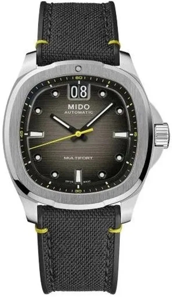 luxusné hodinky Mido Multifort TV Big Date + Naťahovač SAPHIR len za 1 EUR Automat, Vode odolnosť 100M, 40 mm. Hodinky disponujú funkciami luminiscencia a ukazovateľ dátumu. Základné parametre hodín sú: typ strojčeka je mechanické hodinky s automatickým náťahom, vode odolnosť je 100 m, farba ciferníka je čierna a materiál remienka je nylon.
