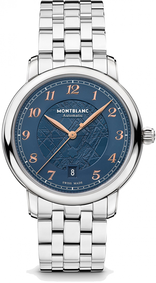 luxusné hodinky Montblanc Star Legacy Limited Edition Automat, 39 mm. Hodinky disponujú funkciami ukazovateľ dátumu. Základné parametre hodín sú: farba ciferníka je modrá, typ strojčeka je mechanické hodinky s automatickým náťahom, vode odolnosť je 50 m a materiál remienka je oceľ.