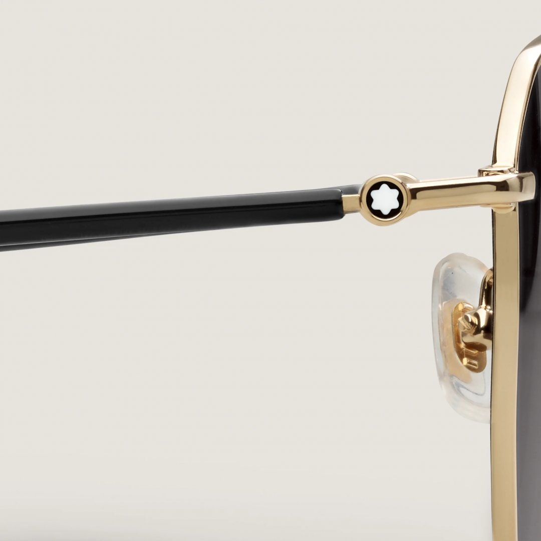 Montblanc Slnečné okuliare, Hranaté, kovový rám, zlatá farba.