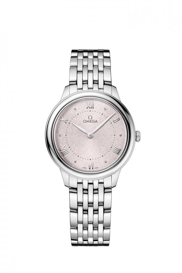 luxusné hodinky Omega De Ville Prestige Quartz, 30 mm. Základné parametre hodín sú: vode odolnosť je 30 m, typ strojčeka je Quartz hodinky, materiál remienka je oceľ a farba ciferníka je strieborná.