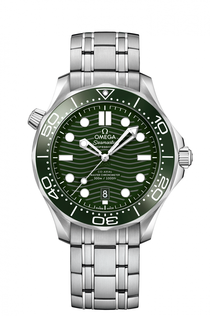 luxusné hodinky Omega Seamaster Diver 300M Manufaktúrny kaliber, Keramika, 42 mm. Hodinky disponujú funkciami heliový ventil, luminiscencia a ukazovateľ dátumu. Základné parametre hodín sú: farba ciferníka je zelená, typ strojčeka je mechanické hodinky s automatickým náťahom, materiál remienka je oceľ a vode odolnosť je 300 m.