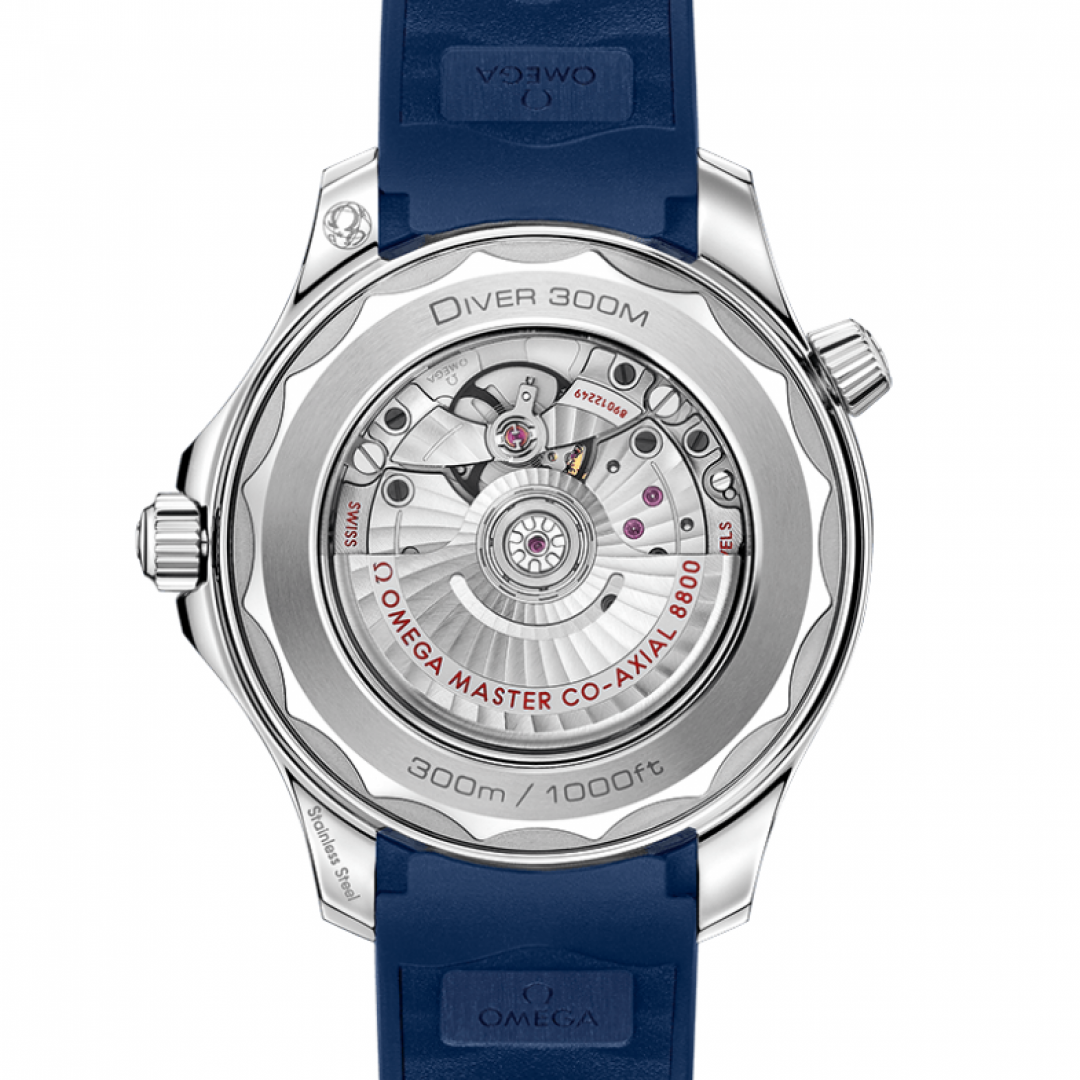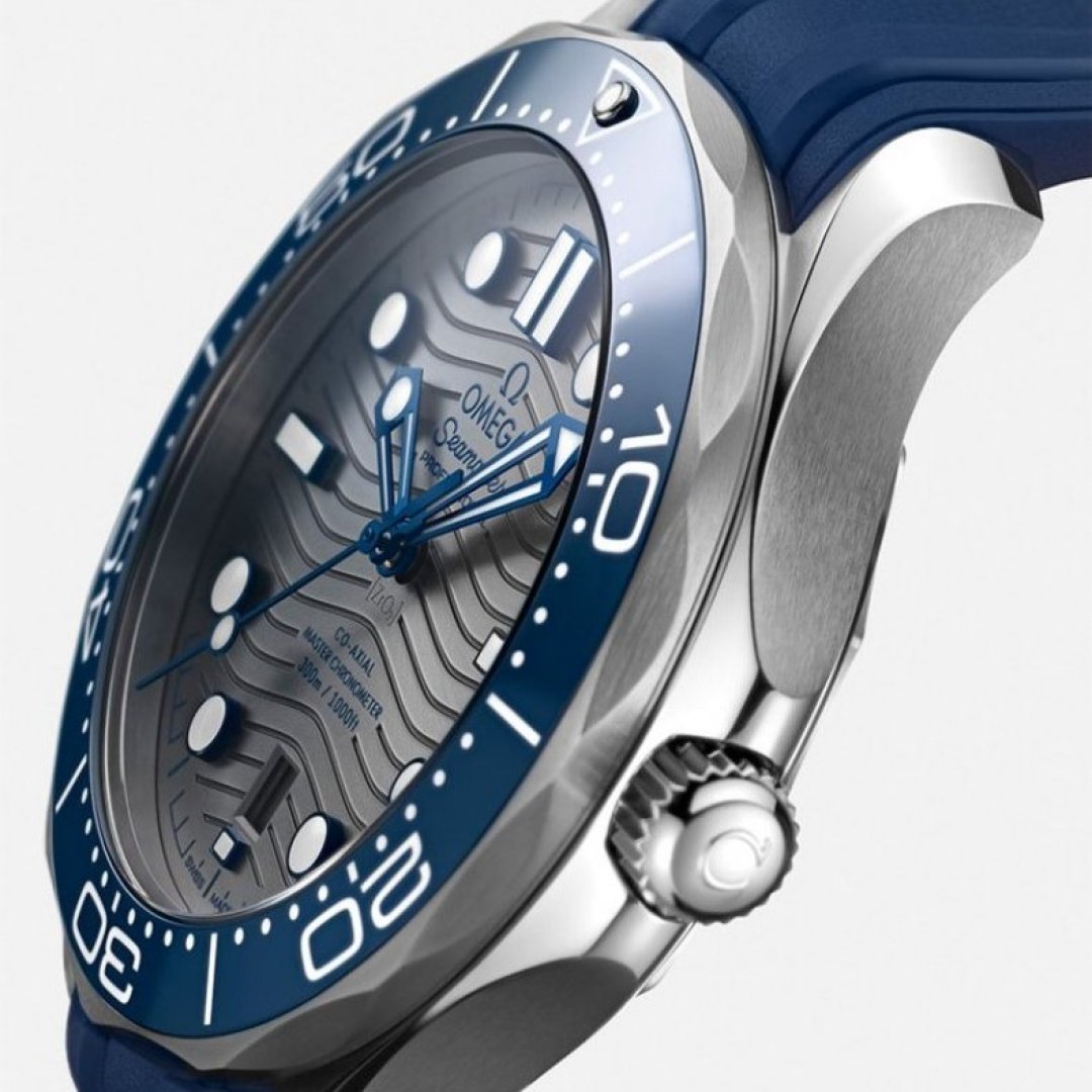 Luxusné hodinky Omega Seamaster Diver 300M Manufaktúrny kaliber, Keramická luneta, 42mm. Hodinky disponujú funkciami heliový ventil, luminiscencia a ukazovateľ dátumu. Základné parametre hodín sú: typ strojčeka je mechanické hodinky s automatickým nátahem, materiál remienka je kaučuk, vode odolnosť je 300 m a farba ciferníka je modrá.