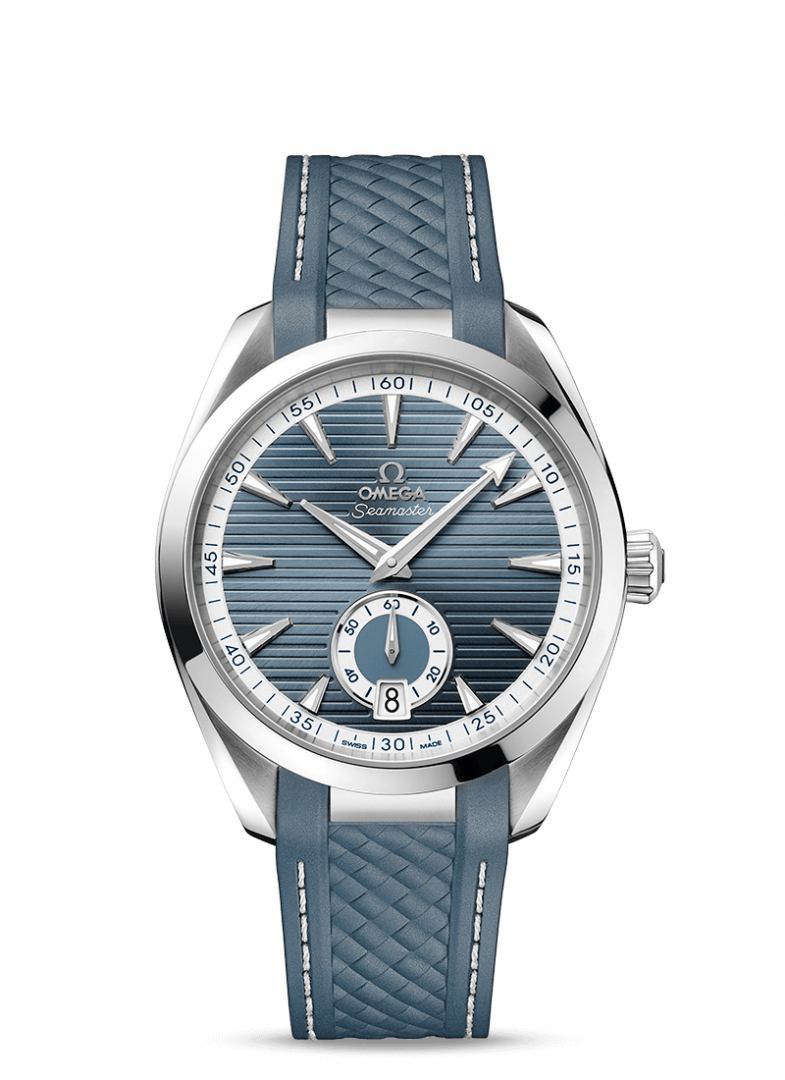 luxusné hodinky luxusné hodinky Omega Seamaster Aqua Terra 150M Manufaktúrny kaliber, Vode odolnosť 150M, 41 mm. Hodinky disponujú funkciami luminiscencia a ukazovateľ dátumu. Základné parametre hodín sú: farba ciferníka je modrá, typ strojčeka je mechanické hodinky s automatickým náťahom, materiál remienka je kaučuk a vode odolnosť je 150 m.