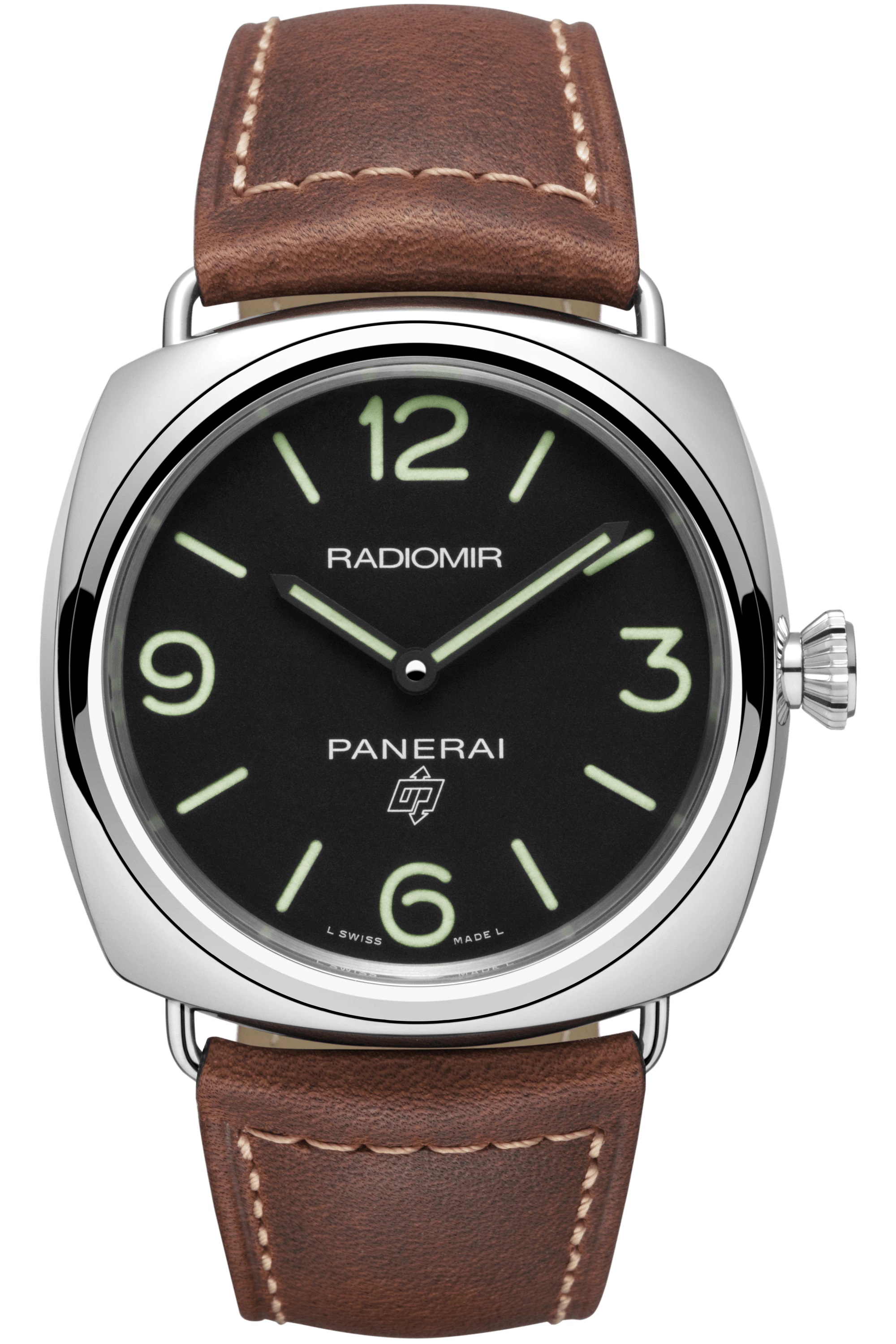 luxusné hodinky Panerai Radiomir Base Logo Mechanika, Vode odolnosť 100M, 45 mm. Hodinky disponujú funkciami luminiscencia. Základné parametre hodín sú: farba ciferníka je hnědá, typ strojčeka je mechanické hodinky s ručným náťahom, materiál remienka je koža a vode odolnosť je 100 m.