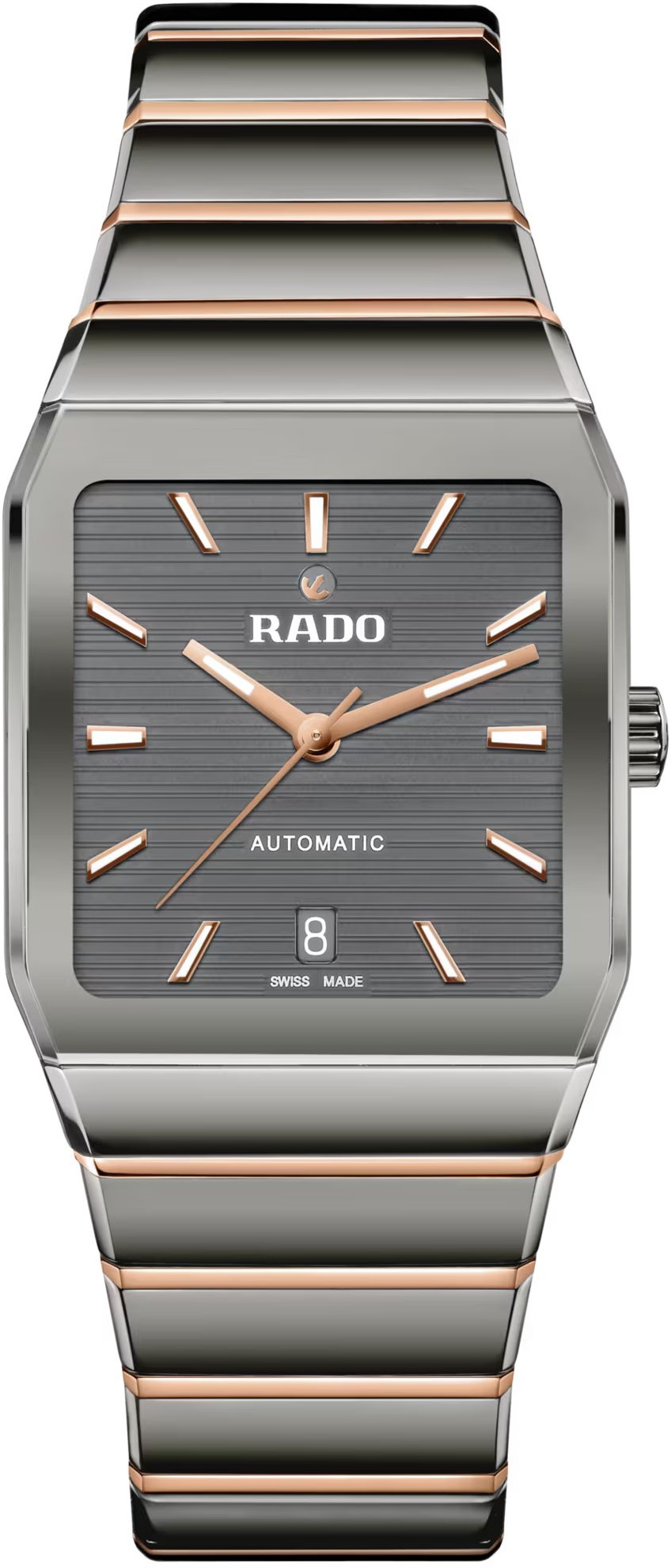 luxusné hodinky luxusné hodinky Rado Anatom Automatic Automat, 32.5 mm. Hodinky disponujú funkciami luminiscencia a ukazovateľ dátumu. Základné parametre hodín sú: typ strojčeka je mechanické hodinky s automatickým náťahom, vode odolnosť je 50 m, farba ciferníka je šedá a materiál remienka je oceľ a plasma keramika.