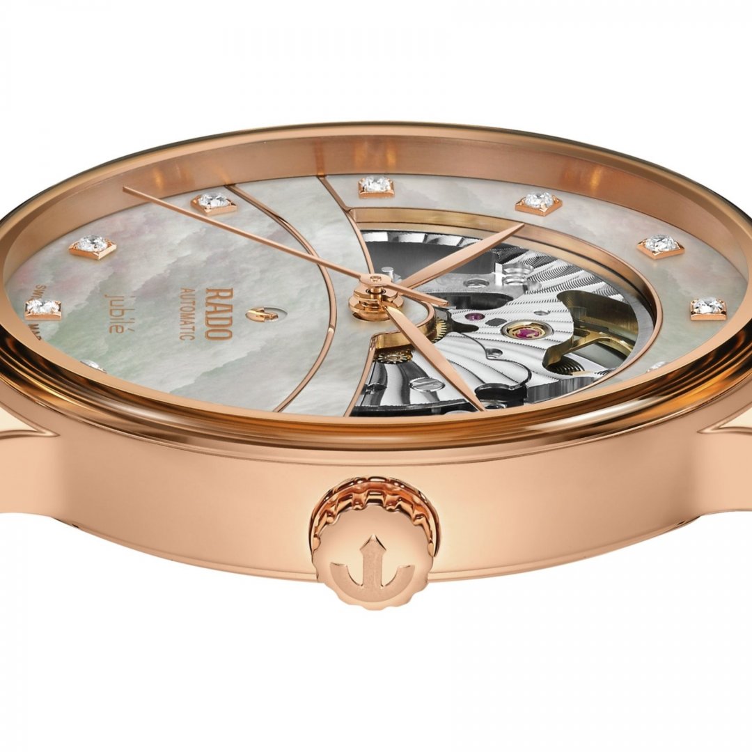 luxusné hodinky luxusné hodinky Rado Centrix Diamonds Open Heart Diamanty, Automat, 39.50 mm. Základné parametre hodín sú: typ strojčeka je mechanické hodinky s automatickým náťahom, materiál remienka je oceľ a plasma keramika, vode odolnosť je 50 m a farba ciferníka je priehľadná, perleť a šedá.